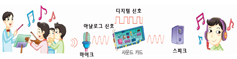 ③ 음파는 아날로그 형태이기 때문에 컴퓨터에 저장하기